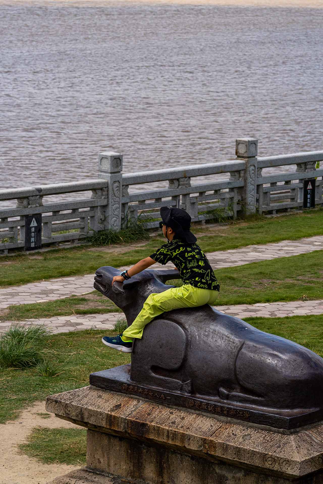 Haining Tidal Bay, in Zhejiang Province, China, is famous for its spectacular Qiantang River tidal bore — one of the largest in the world. During high tide, a massive wall of water rushes upstream, sometimes reaching several meters high. This powerful natural phenomenon draws thousands of visitors each year who gather along the riverbanks to witness the roaring waves and dramatic surges.