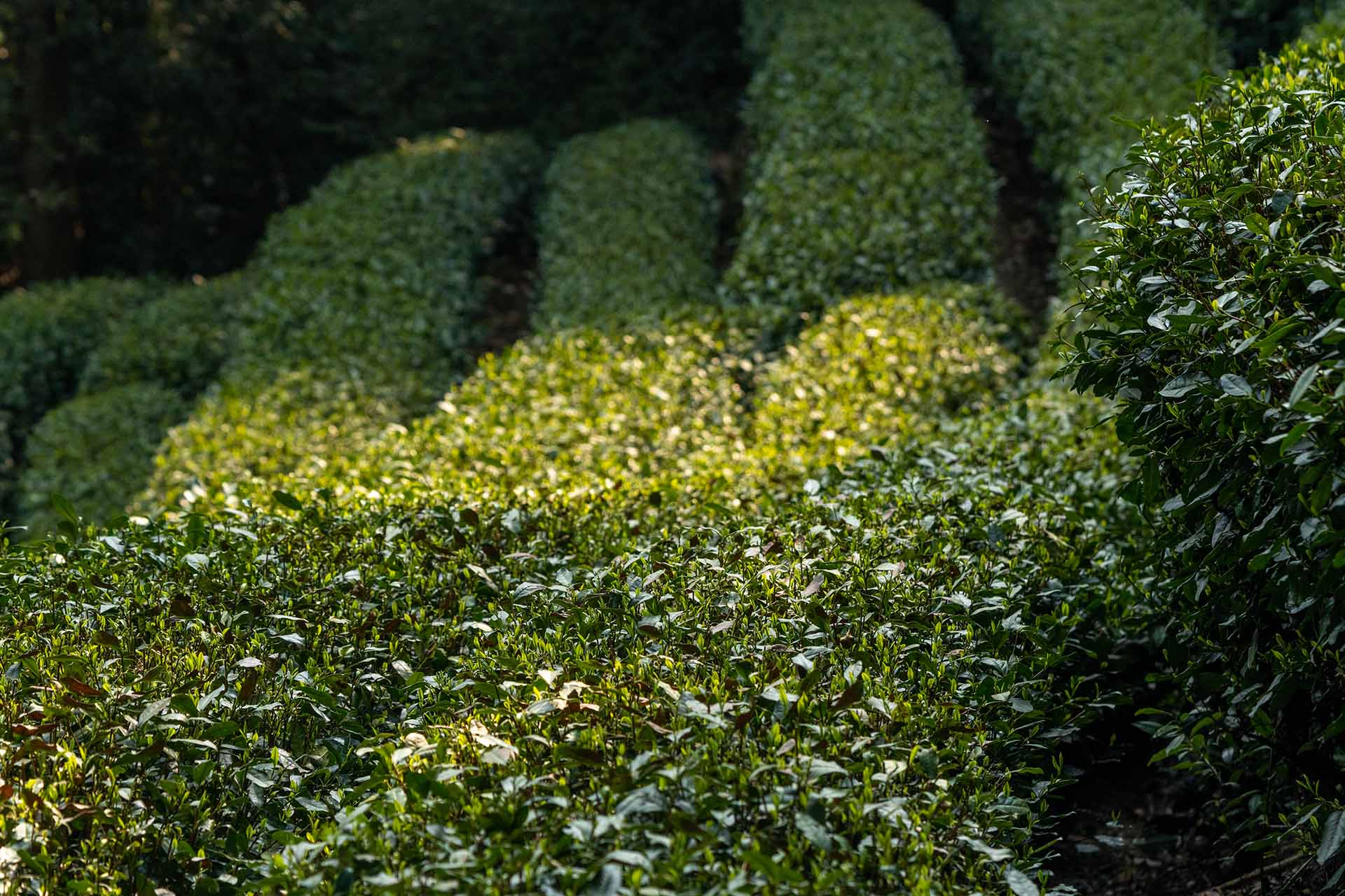 A stepped path winding through tea bushes in Meijiawu Town
